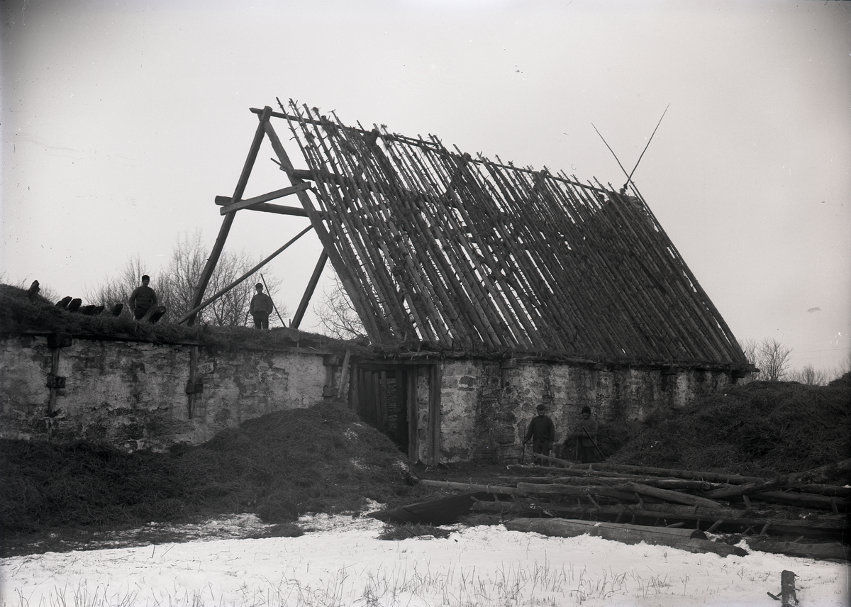Bild 1172. Närs prästgårds lada, norra delen med taket under rivning