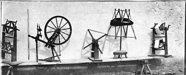 Bild 301. Spinnruck. Haspäl till hasplä harvår av ruckän. Nystl till hängä harvår pa. Bubinar till ränn väv upp