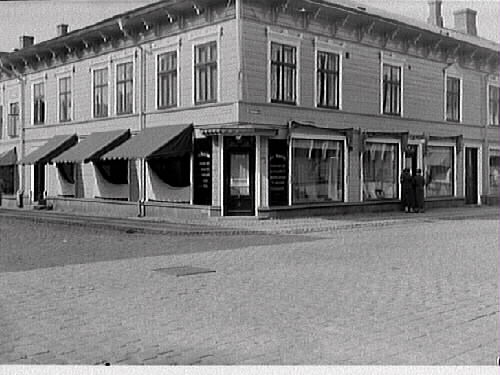 Frans Wennerholms manufakturaffär i hörnet Borgmästaregatan (41) - Kungsgatan. 1940-tal.