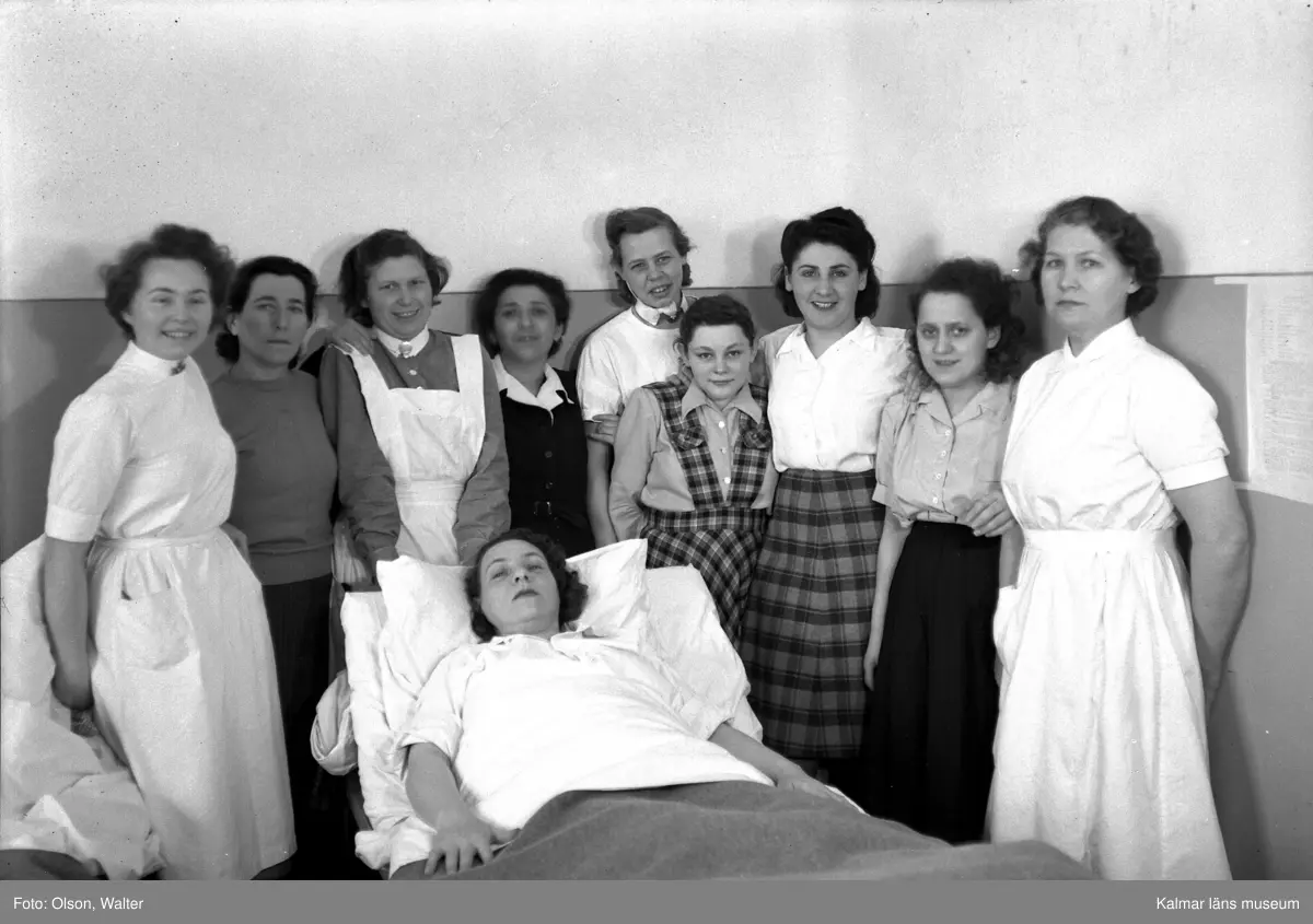 Patienter och personal på Beredskapssjukhuset samlade kring en sängliggande.