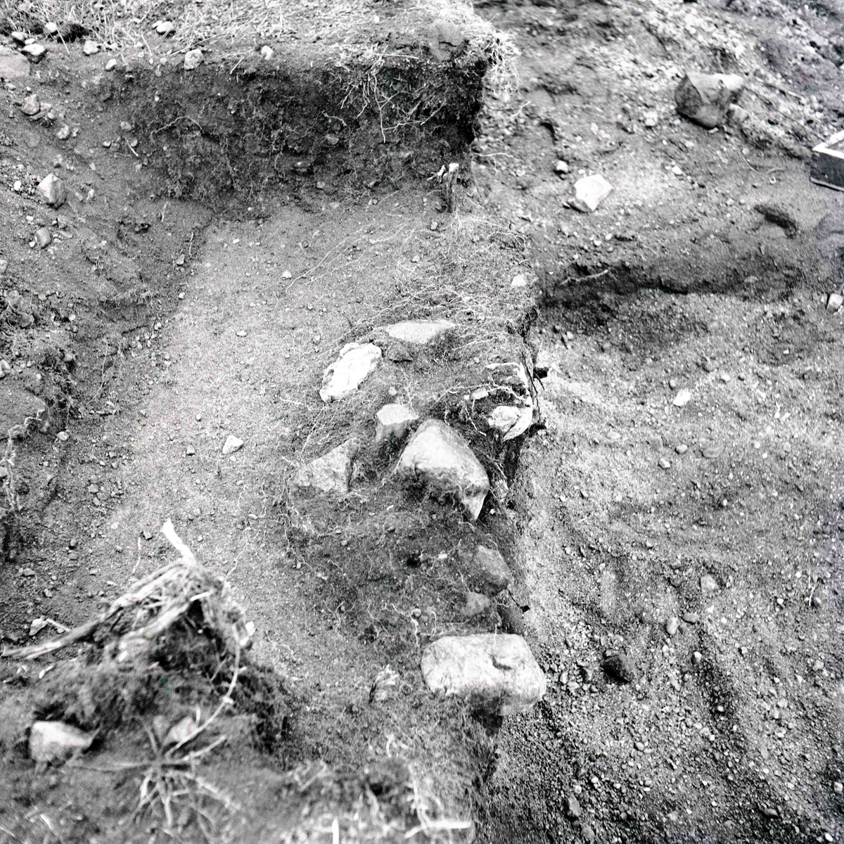 Arkeologisk utgrävning i Gråborg. Plan ( snedfoto ) från väster.