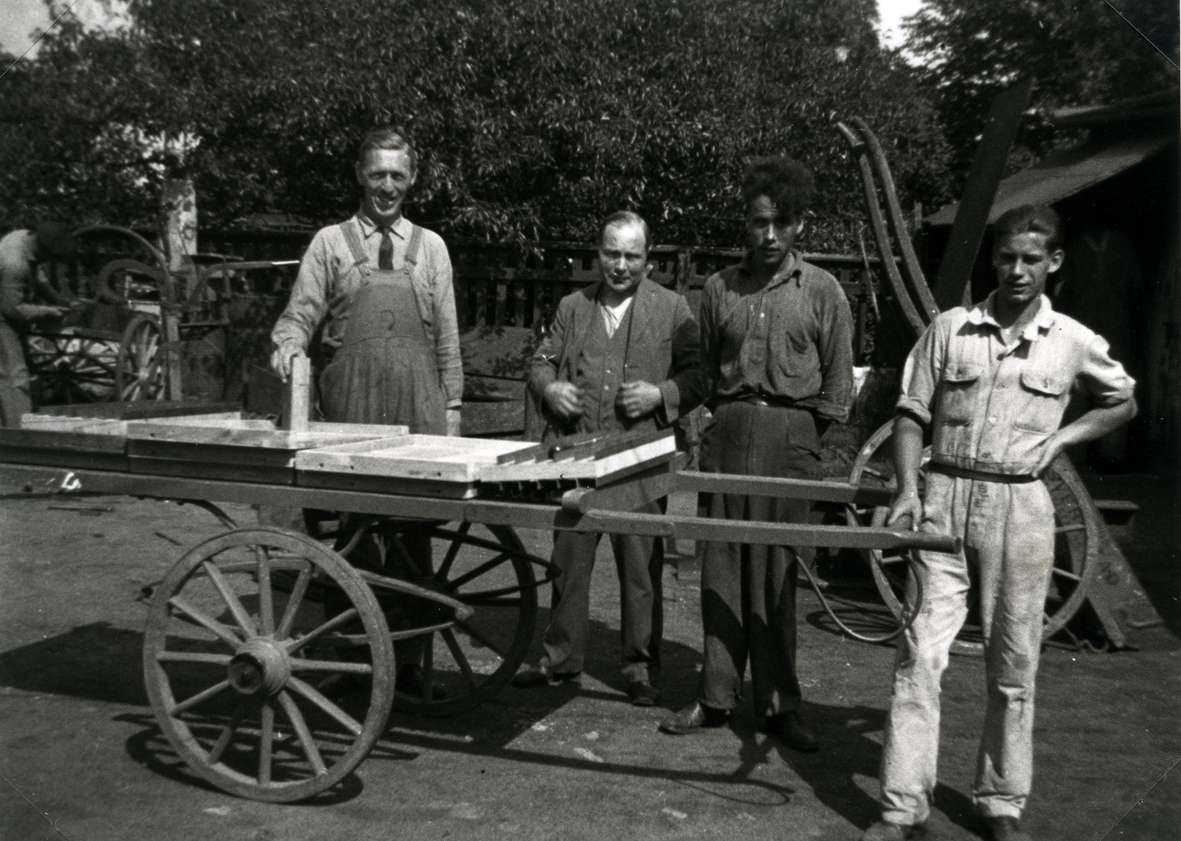 Hulténius, snickare (till vänster). Snickare Tobiasson (andra från vänster). Övriga okända.