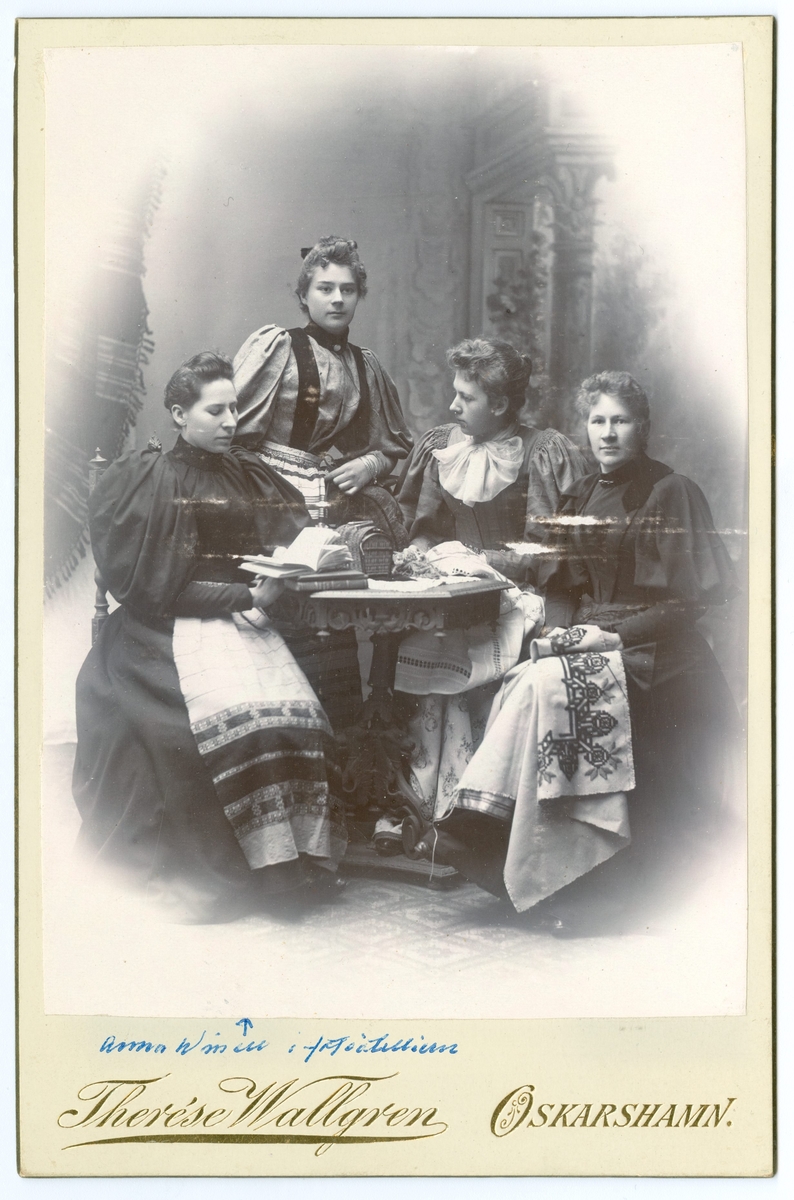 Fotograf Anna Winell med väninnor i ateljén. Thyra Berg sittande i mitten.