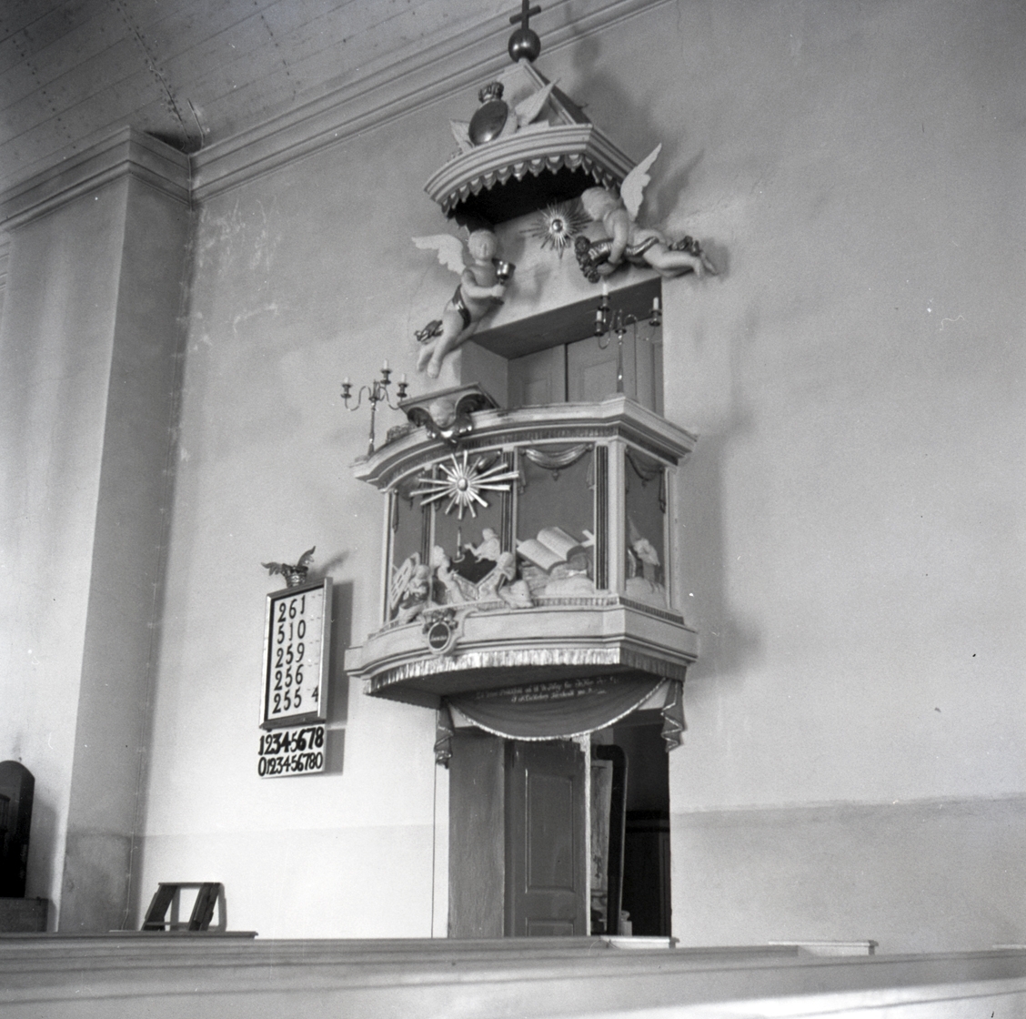 Vena kyrka interiör, predikstolen.