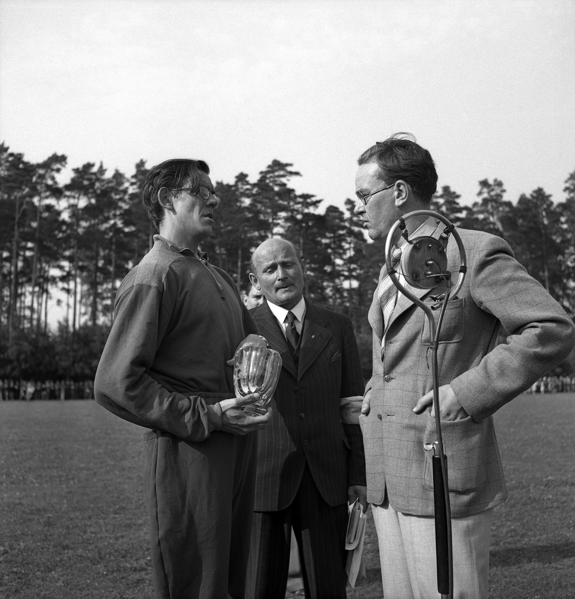 Idrottens dag på Värendsvallen. Prisutdelning. Håkan Lidman blir intervjuad vid en mikrofon.