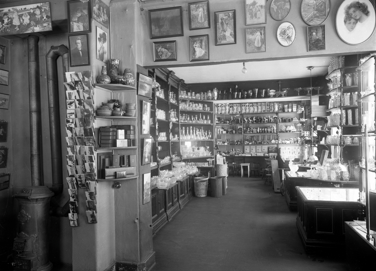Bosättningsaffär, möjligen Bröderna Anderssons Pappershandel med Kostamagasinet på Kungsgatan. Ca. 1910-tal.