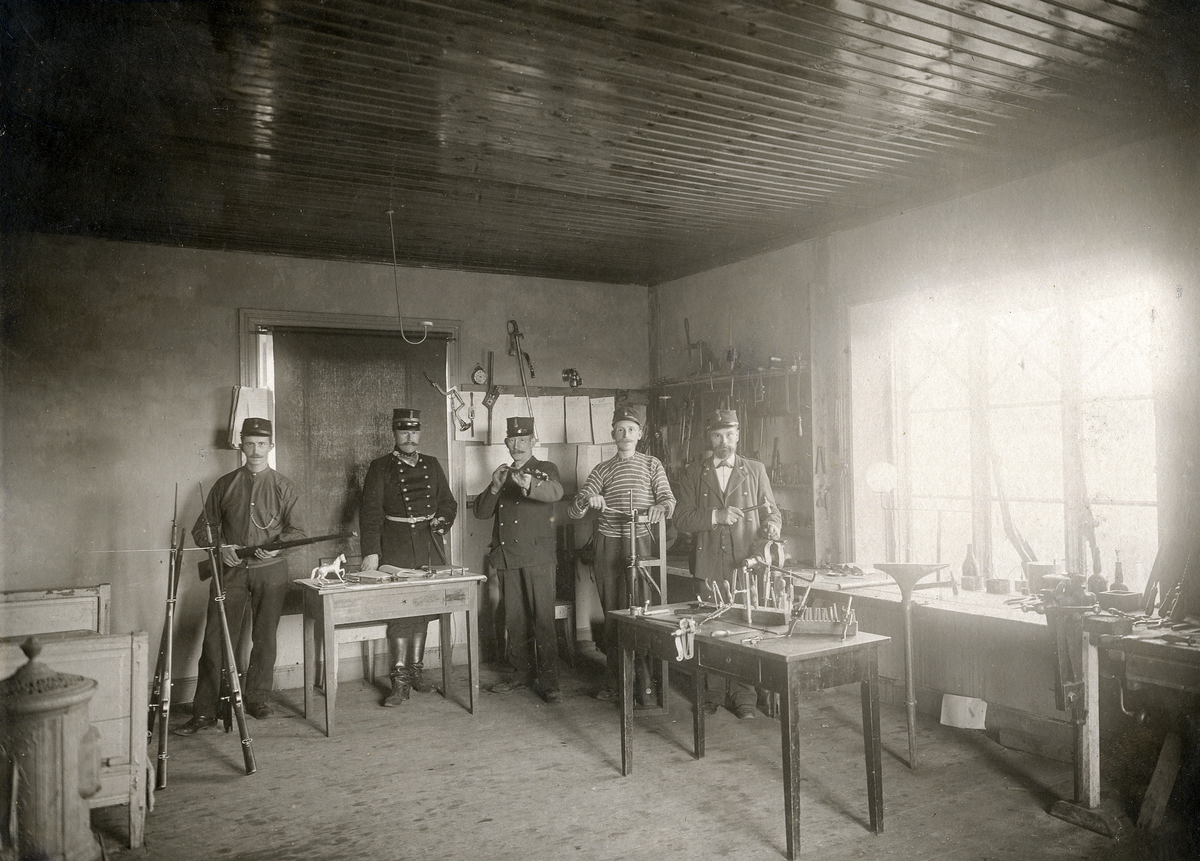 Interiör av den s.k. vapensmedjan på Kronobergs hed.