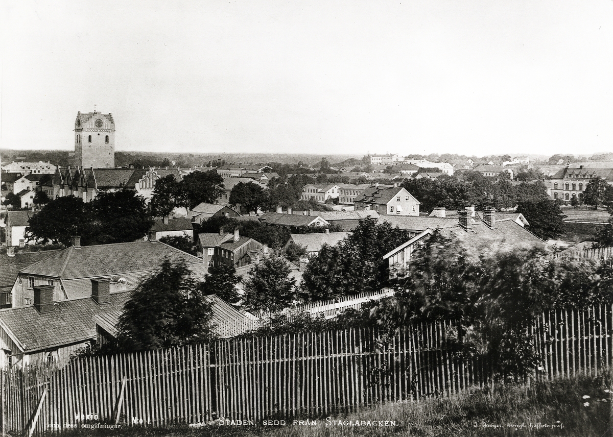 "Vexiö och dess omgifningar". Utsikt över Växjö från Staglaberget (Staglabacken), ca 1880-85.