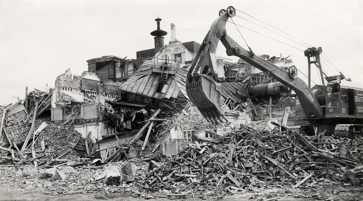 Rivningen av Växjö läroverk 1966.