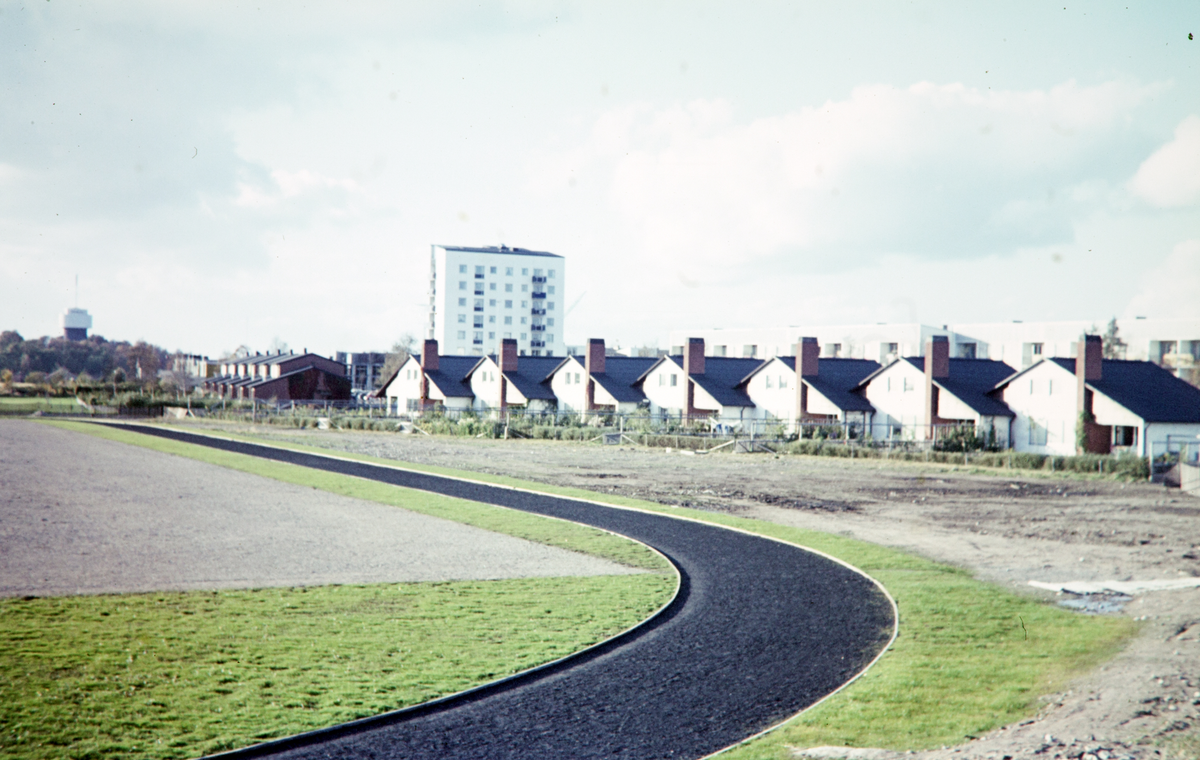 Radhus vid Kristina Nilssons väg, Växjö. I bakgrunden syns vattentornet på Hovsberg.
