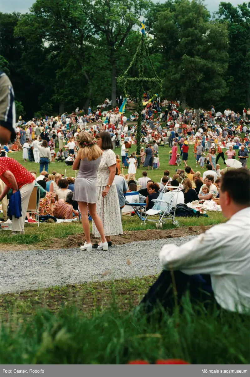 Titel: Midsommarfirande vid Gunnebo slott i Mölndal, okänt årtal. Dans kring midsommarstången.