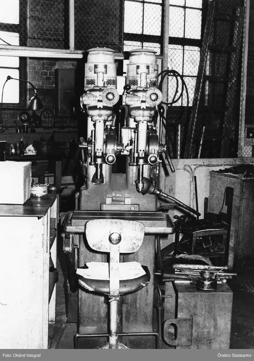 Arbetsplats med borrmaskin på Centralverkstäderna, 1960-tal