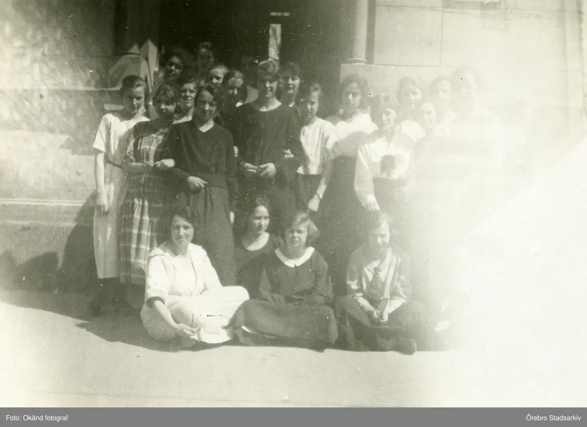 Eleverna vid Örebro läns småskollärarinneseminarium samlade framför kameran, våren 1923