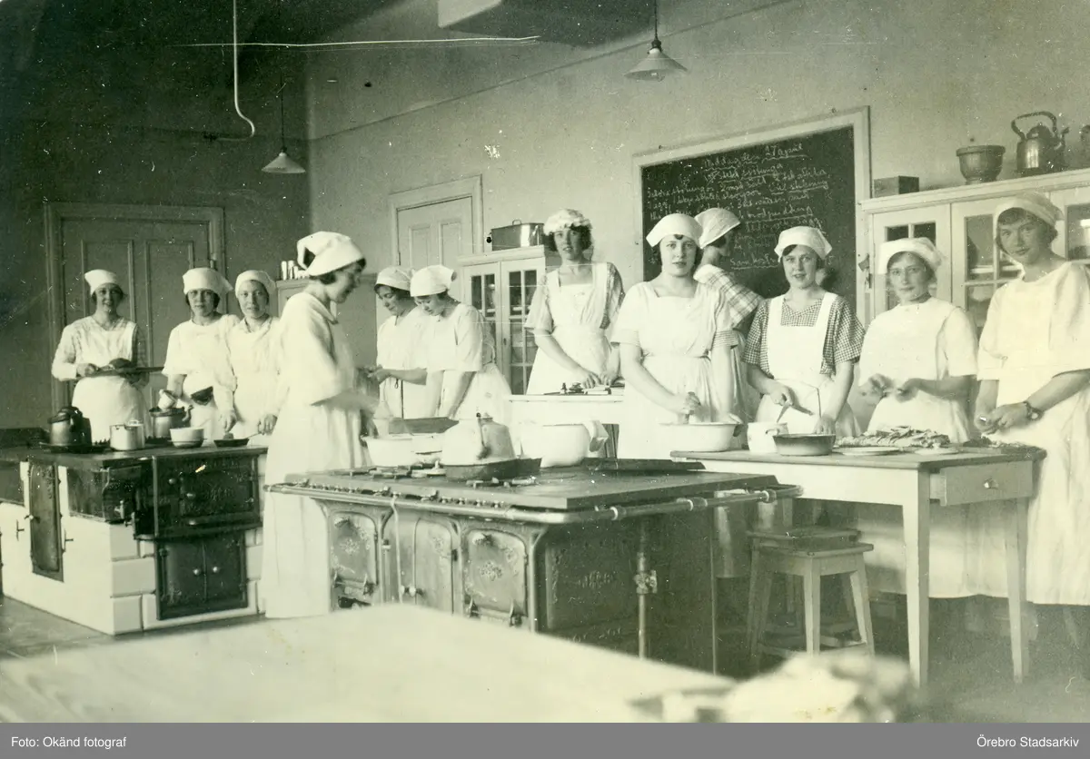 Elever i klass II grupp 2 i skolköket vid Örebro läns småskollärarinneseminarium, 1920-tal