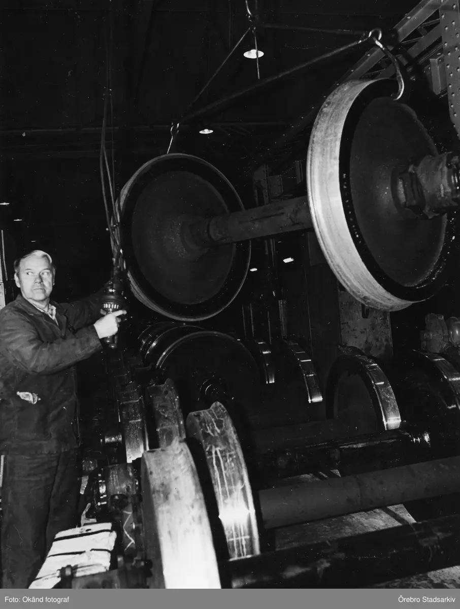 Transport av vagnshjul på Centralverkstäderna, 1960-tal