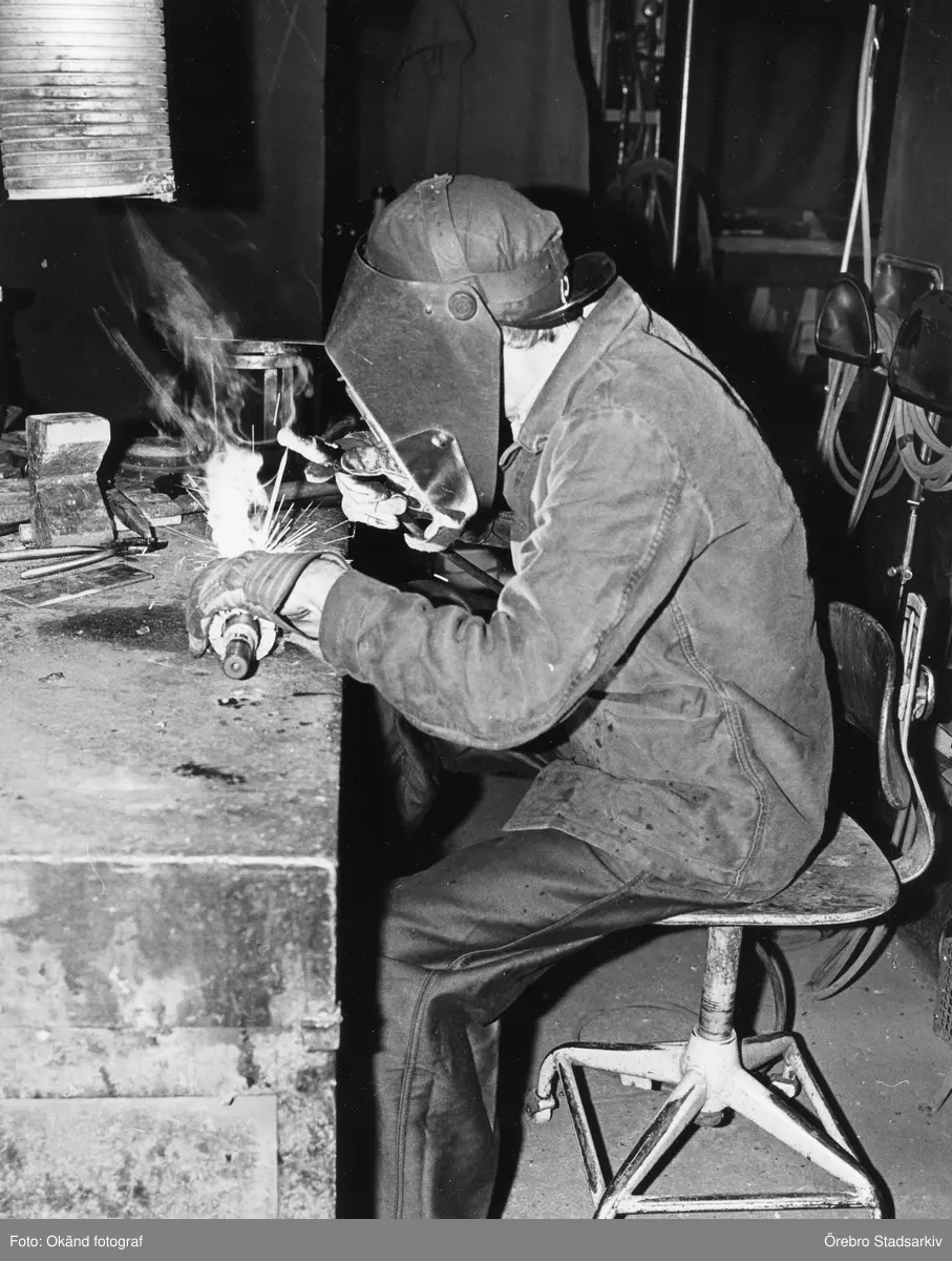 Svetsreparation av generatoraxel på Centralverkstäderna, 1970-tal