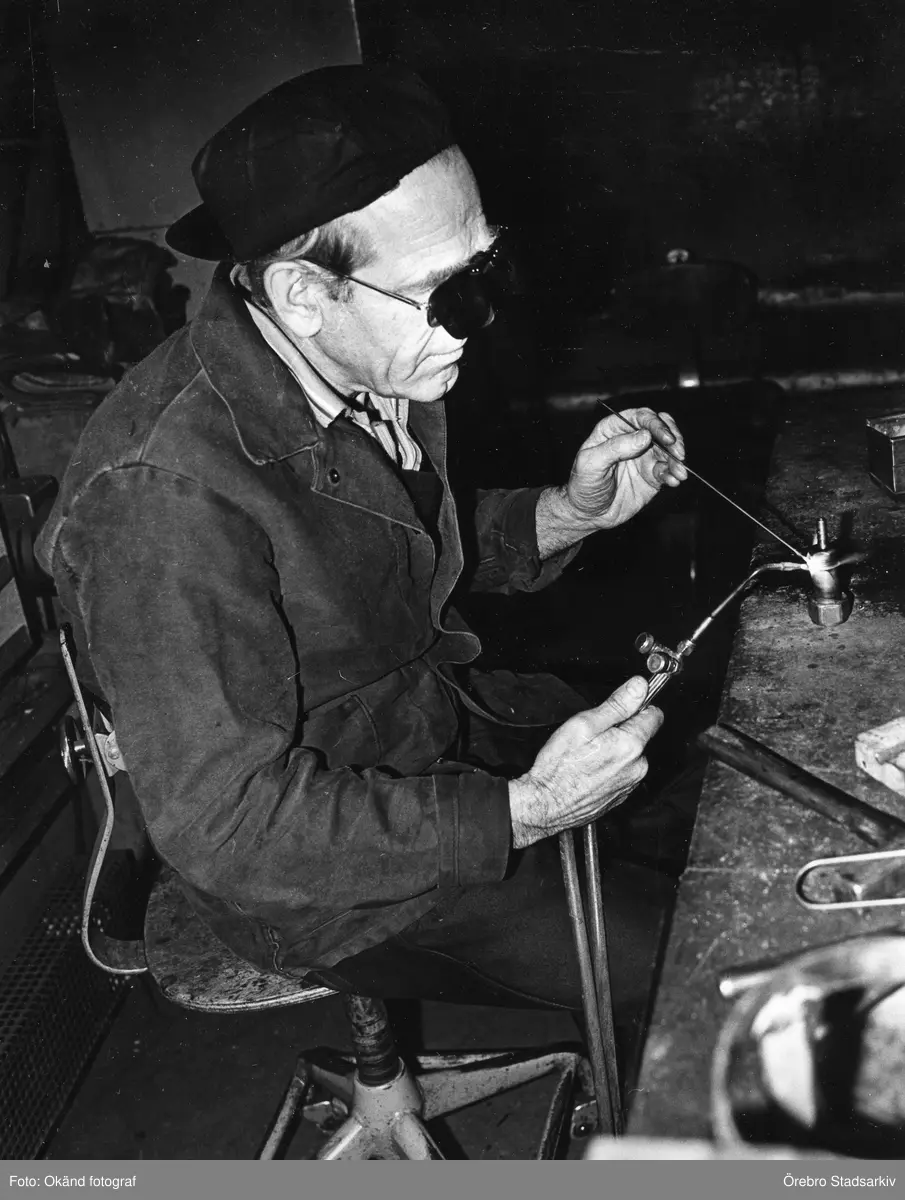 Slaglödning av nippel på Centralverkstäderna, 1950-tal