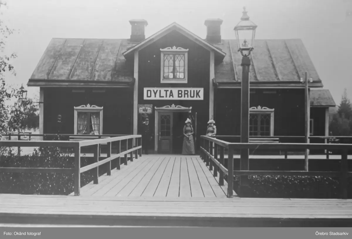 Två damer väntar på tåget vid Dyltabruks järnvägsstation, omkring 1890