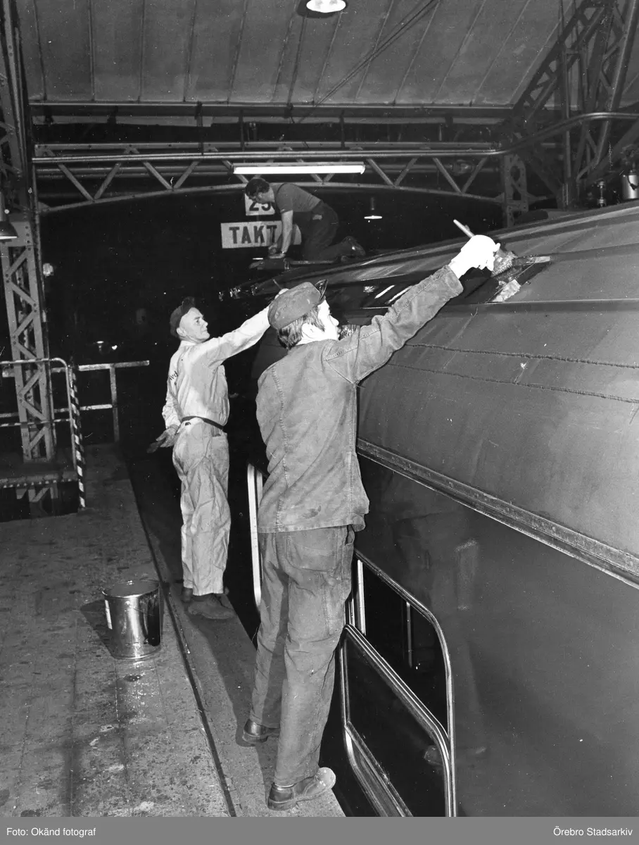 Målning av vagnstak på Centralverkstäderna, 1960-tal