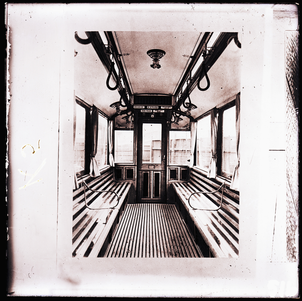 Interiör av spårvagnskupé.