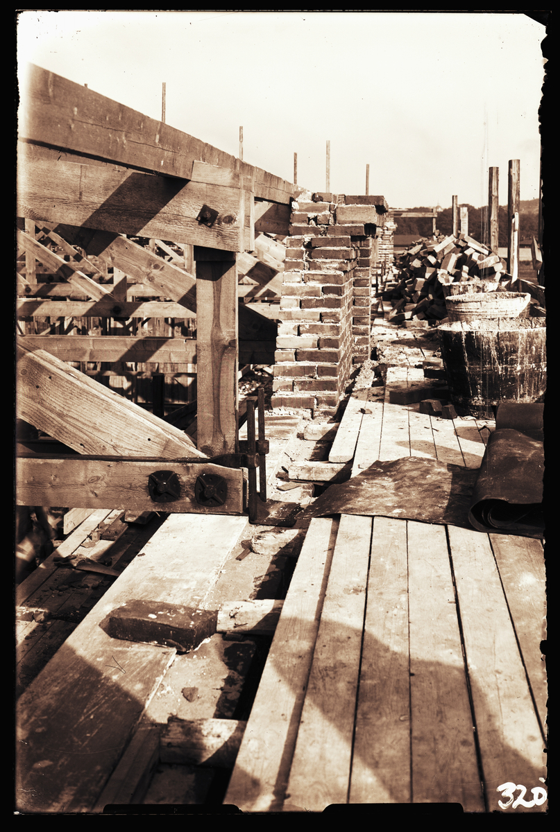 "Vagnhallen Gårda.Detalj av takstolarnas infästning i murarna."