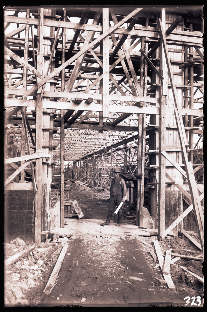 "Vagnhallen Gårda. Gjutning av portpelare."