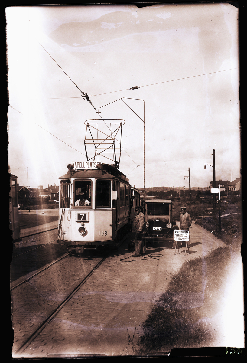 "Svetsningsaggregat (02428) med passerande spårvagn."