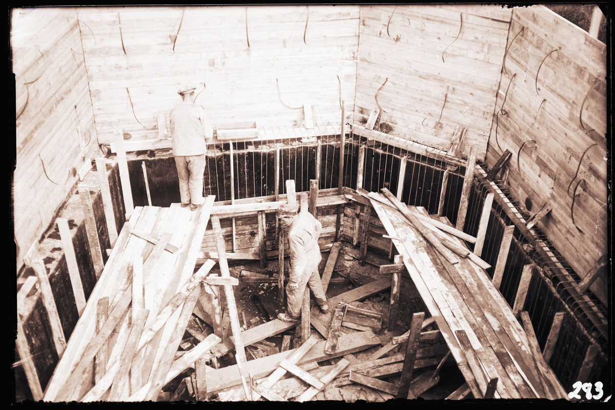 Titel: "Garage Friggagatan. Detalj av isoleringsskikt, aqualiteisolering jämte armering."