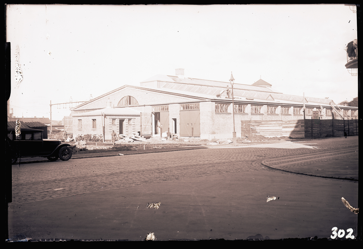 "Garage Friggagatan. Gården i ofullbordat skick, exteriörbild tagen från Alströmersgatan."