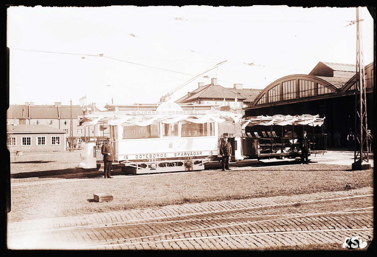 "Jubileet 1929, vagnsett vid vagnhallen, närbild."