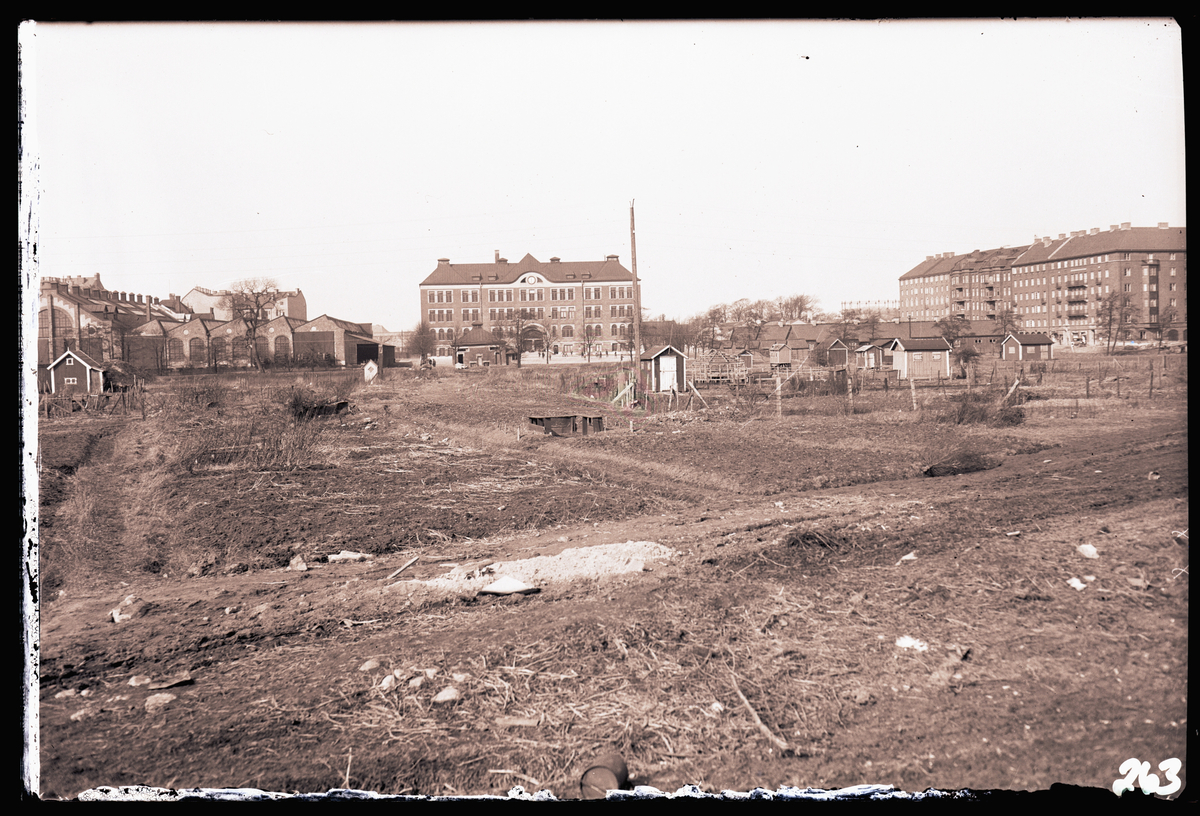 "Vy över område vid blivande vagnhall å Gårda, mars 1930."
