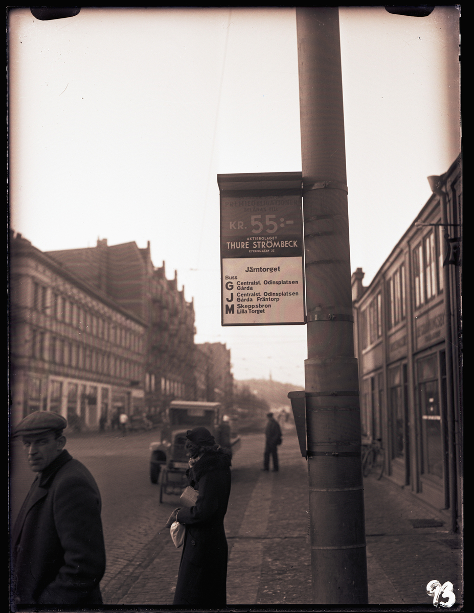Titel: "Hållplatstavla på Järntorget 26/1 1937."