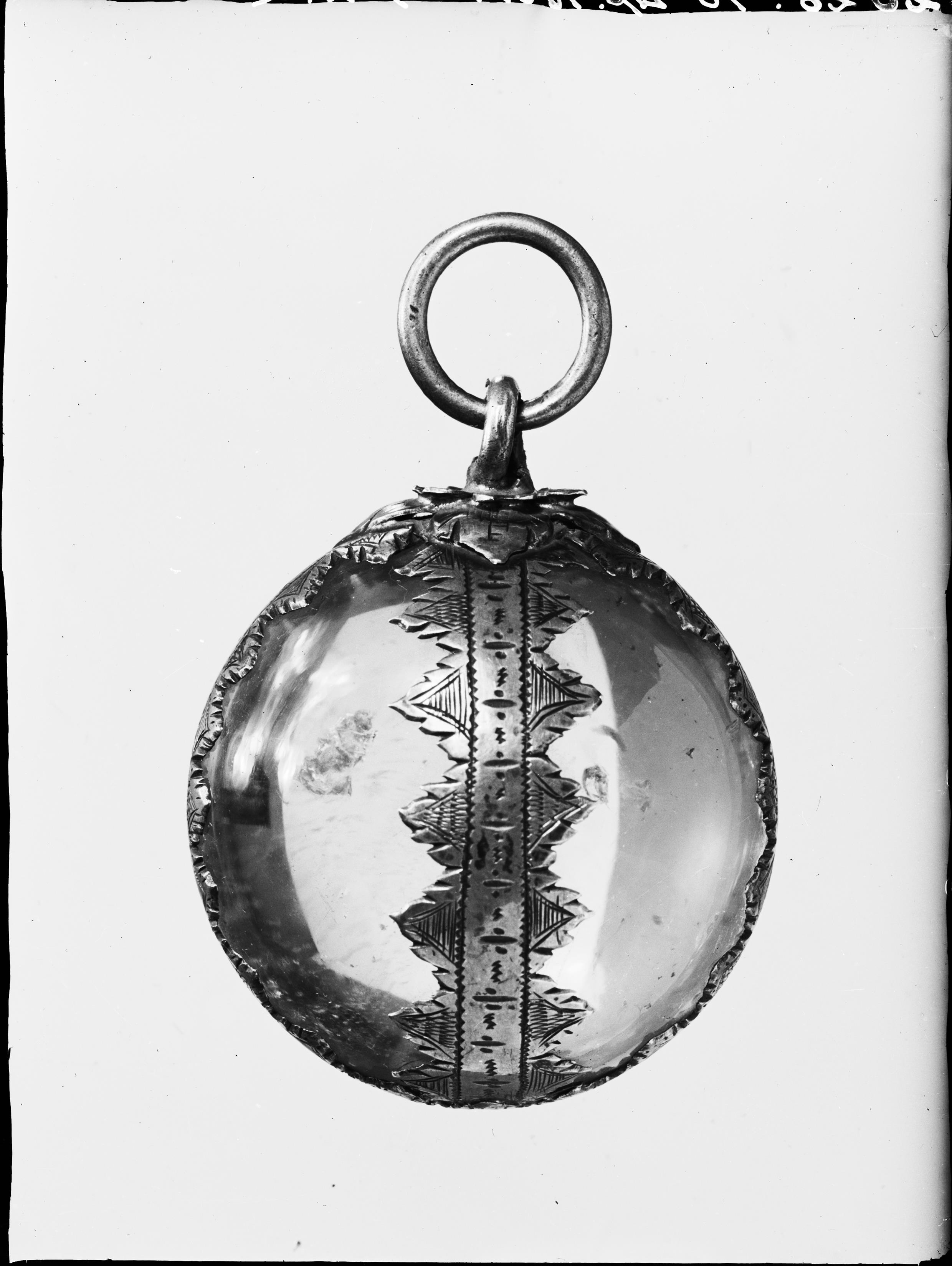 Korkåpa från 1500-talet: berlock av bergkristall tillhörande ryggskölden.