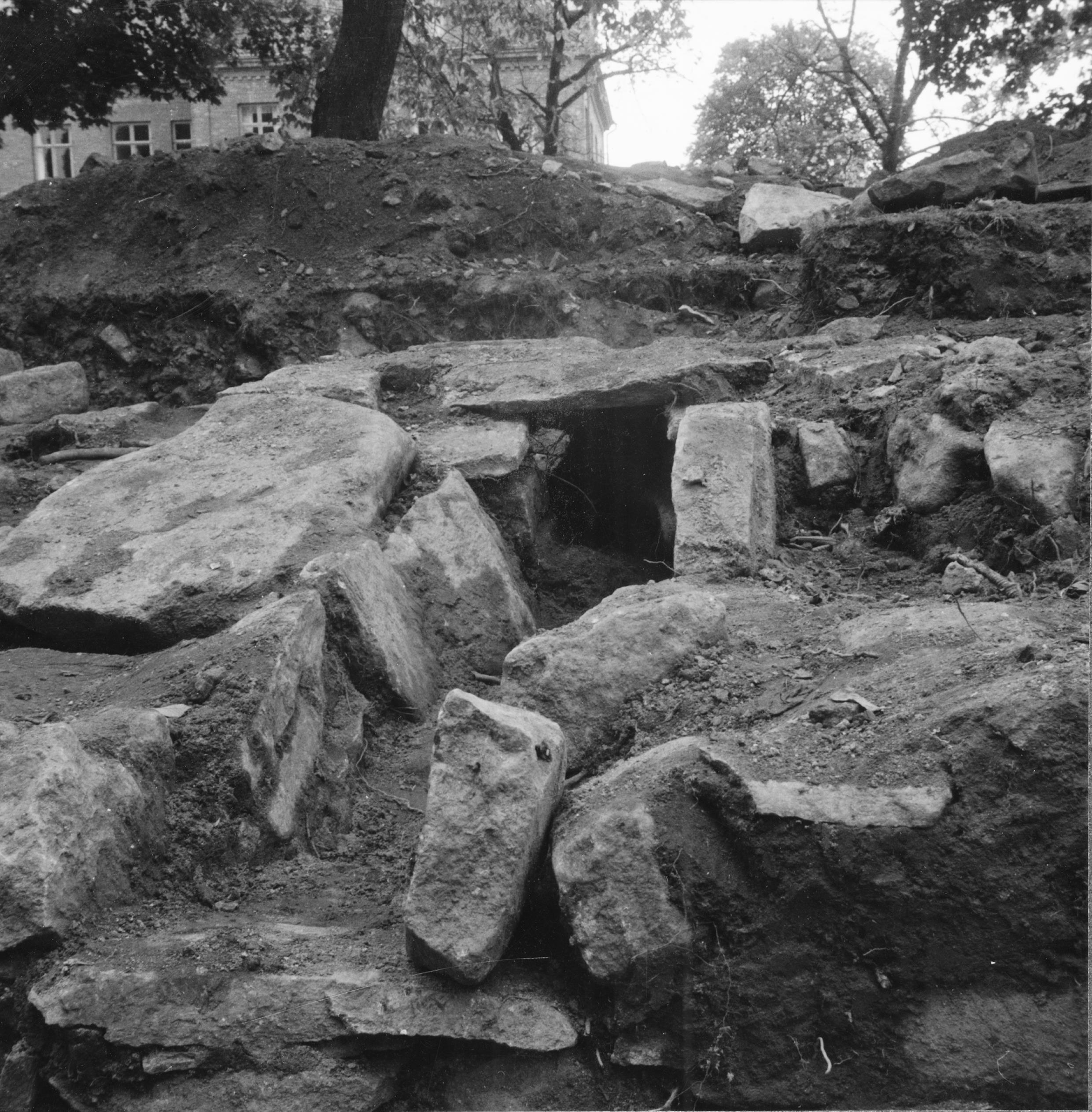 Beskrivning: Kyrkoruinen, lufttrumma till västligaste gravkammaren.