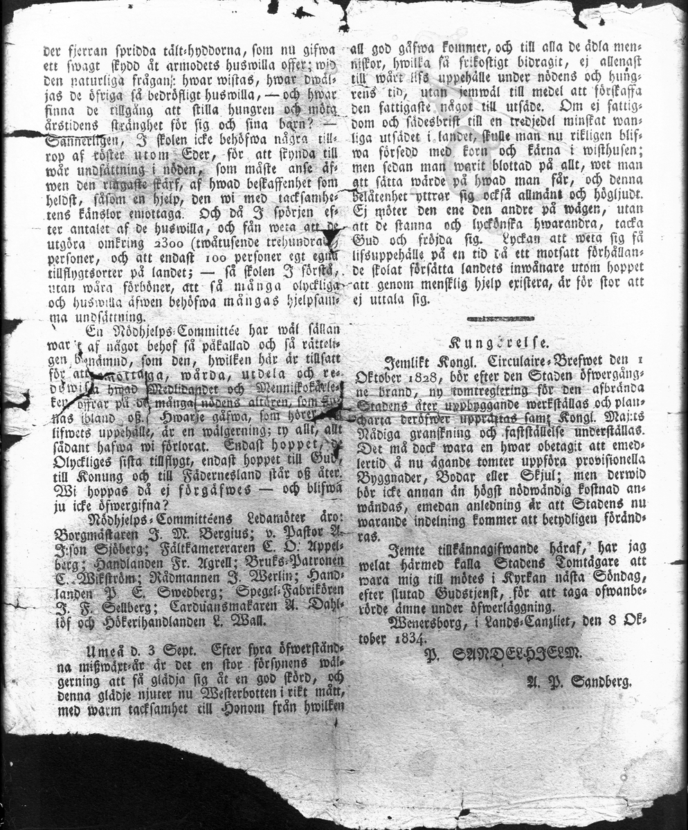 Titel: Tidningsartikel om branden 1834. Vänersborg