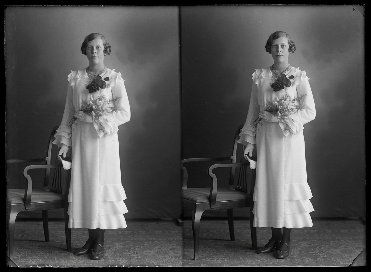 Porträtt, läsfoto. Gunhild Lundkvist, Box 396, Hallstahammar.
