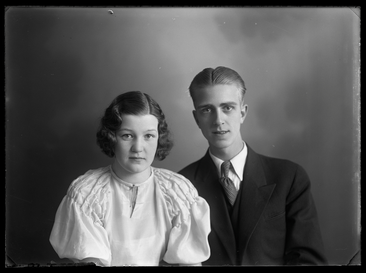Grupporträtt, två personer. Alex Eriksson, Tomtebo 276, Hallstahammar.