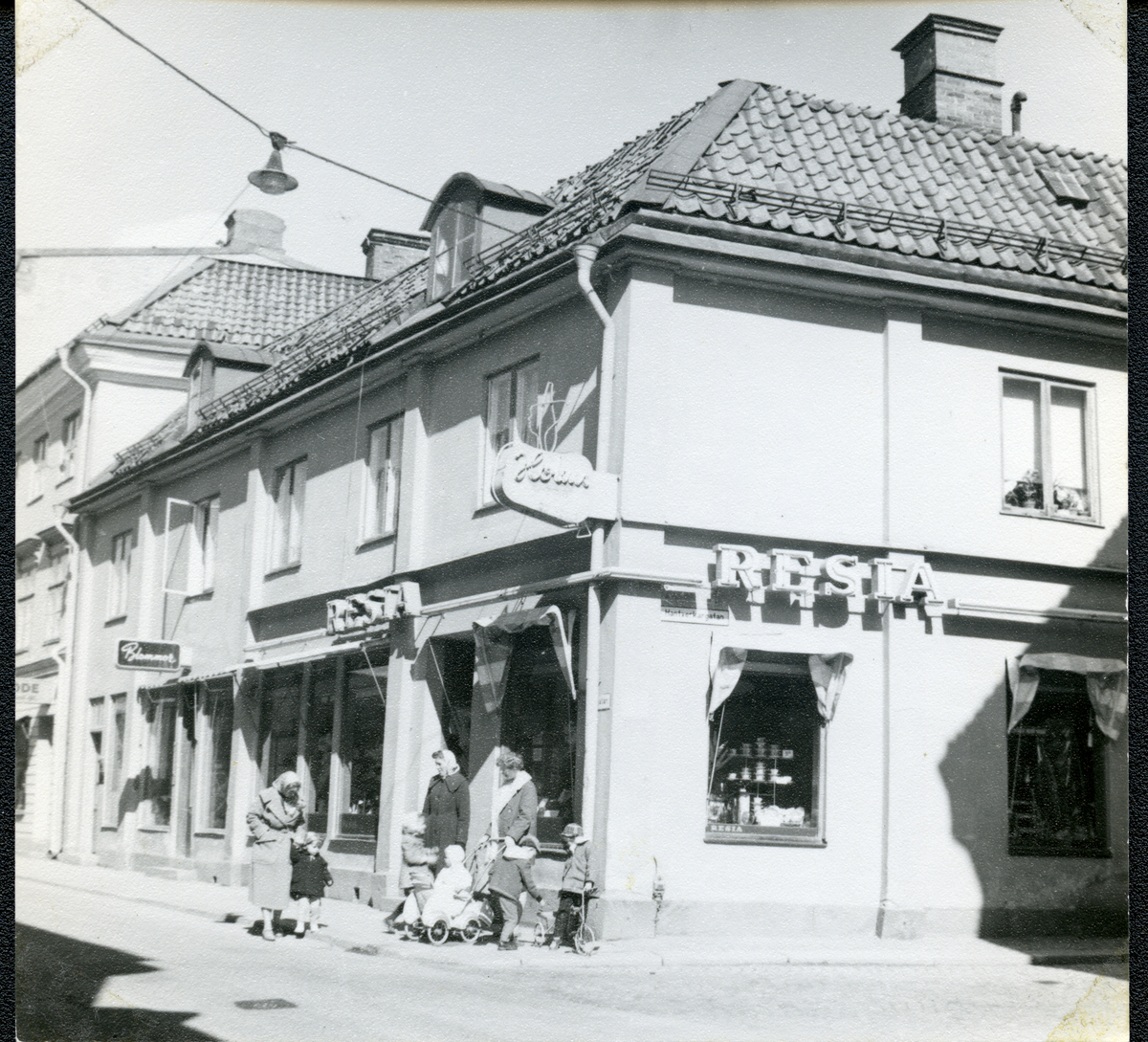 Butiksbyggnad i hörnet Köpmangatan/Hantverkargatan. 1950-1960-tal.