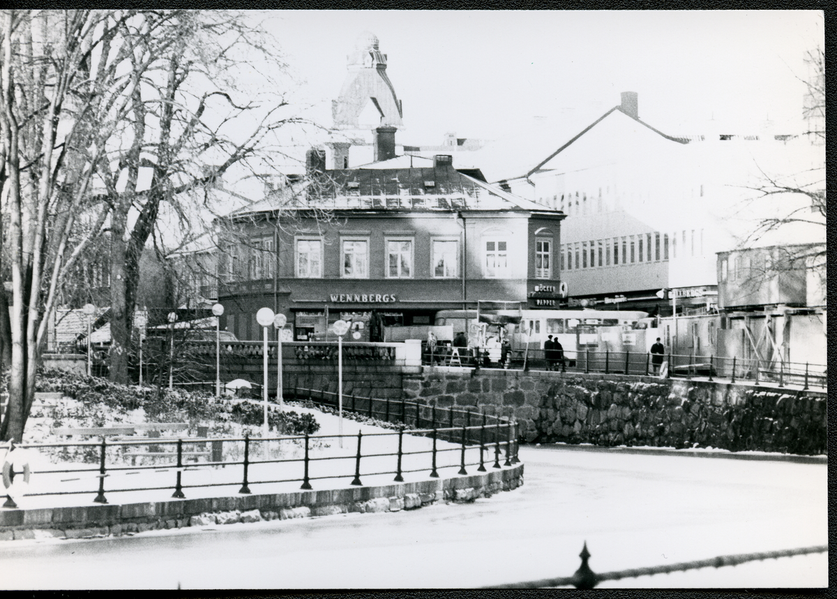 Wennbergs Bokhandel i hörnet Stora gatan/Köpmangatan. 1950-1960tal.
