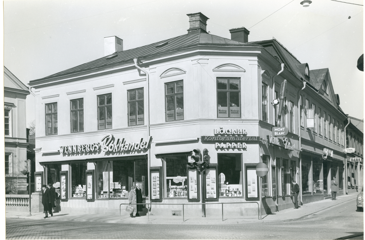 Wennbergs Bokhandel i korsningen Stora gatan/Köpmangatan.