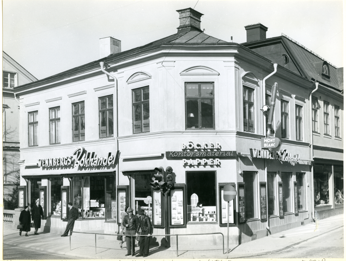 Wennbergs Bokhandel i korsningen Stora gatan/Köpmangatan.