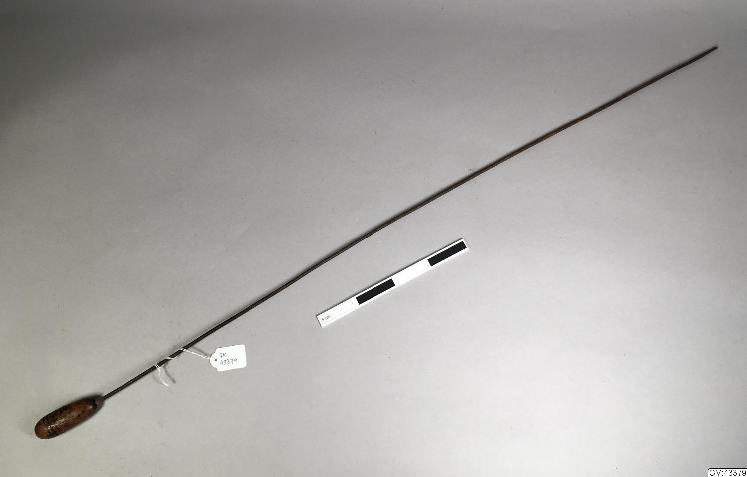 se fotografi GhmE:5277. Troligtvis är föremålet som syns monterat på väggen detsamma som detta.