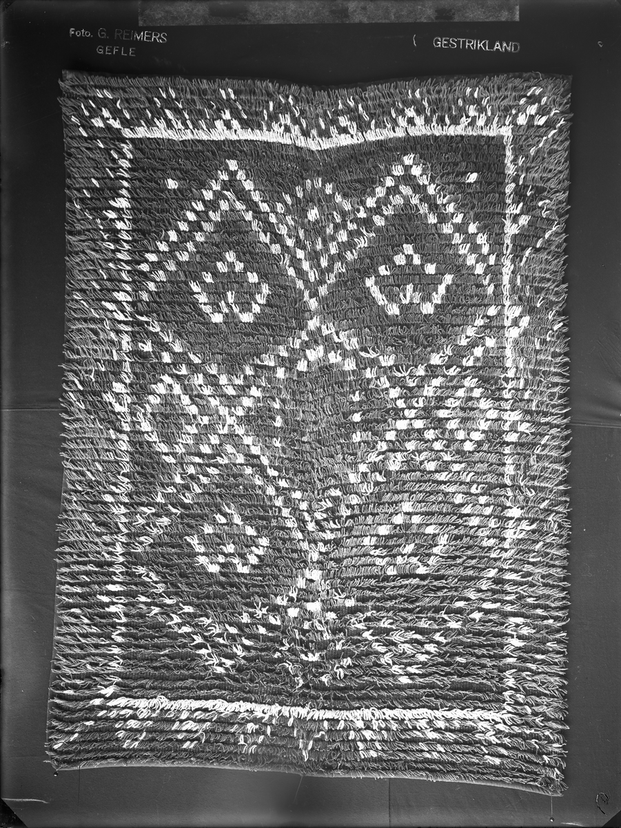 Rya med geometriskt mönster, hjärtan i romber. (6).