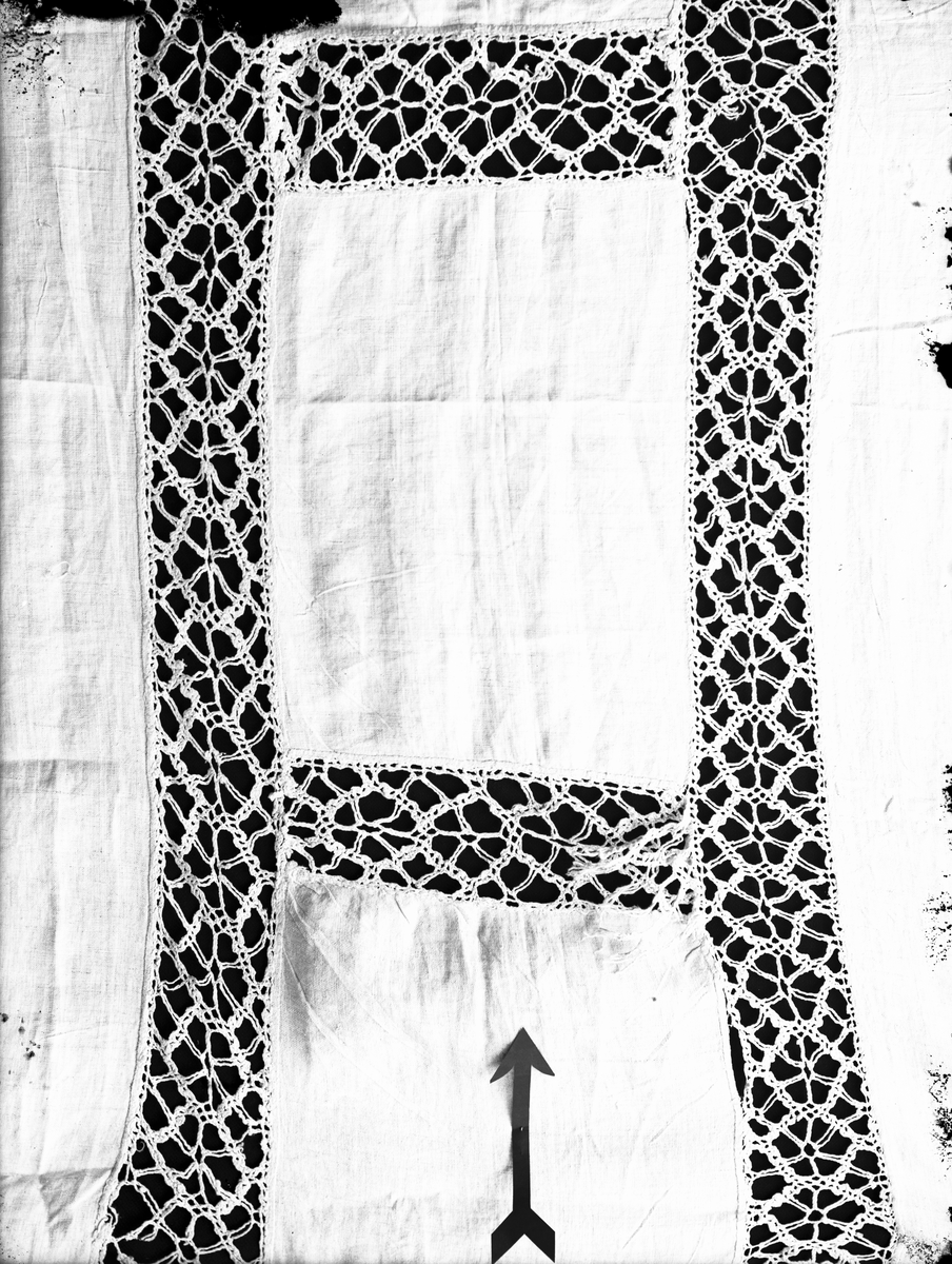 Kvistaklä´, väggbeklädnad av lärft och knypplad ovanåkersspets.