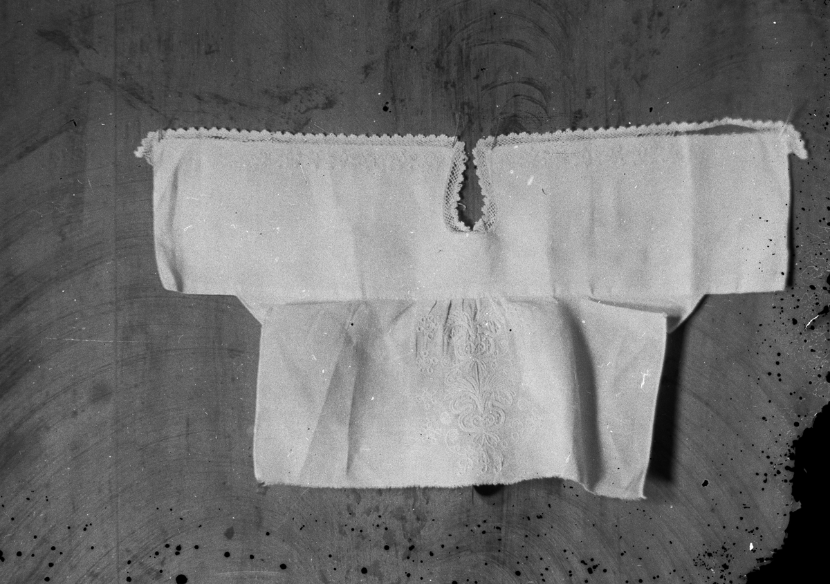 Titel: Krage, nattkappa, med fritt broderi och spets.