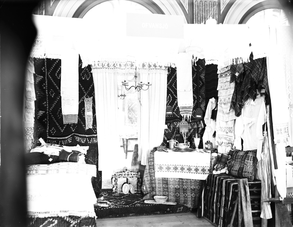 Utställning av hemslöjd från "Ofvansjö" troligen i Stadshuset, Gävle.