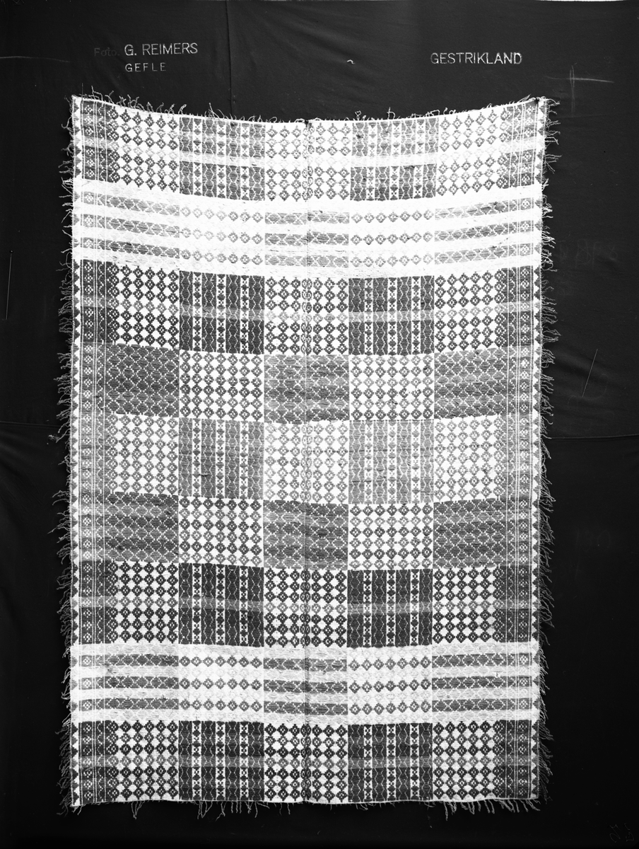 Täcke vävt i opphämta. Hopsytt av två våder. (27)
