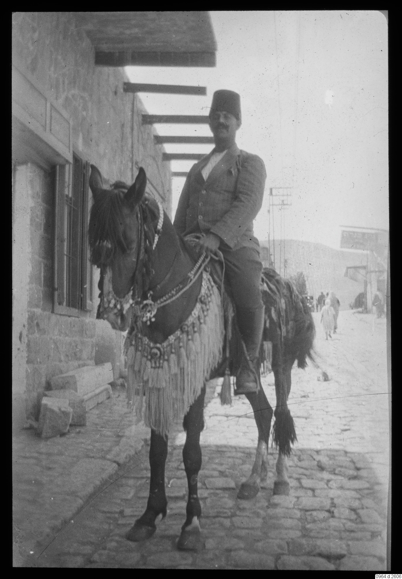 gata, byggnad, fez, man, häst, kostym, fotografi, photograph