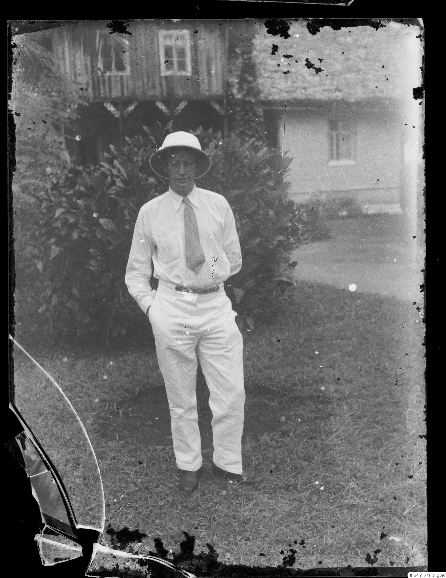 växter, tropikhjälm, man, missionsstation, buske, missionär, fotografi, photograph