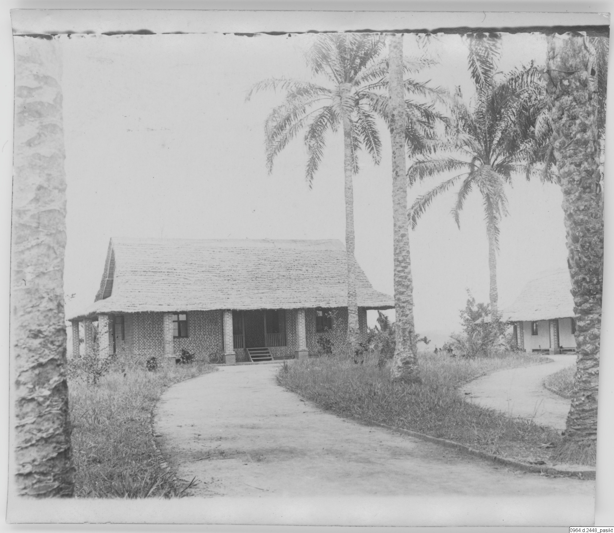 väg, veranda, missionsstation, tegel, byggnad, palm, fotografi, photograph